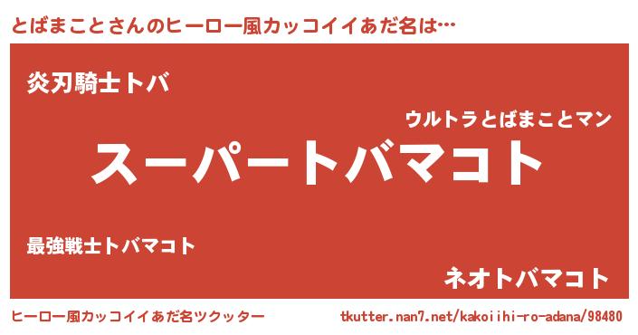 | ポケモン風あだ名 | 『トバチュウ』『ヒトバマコト』 |