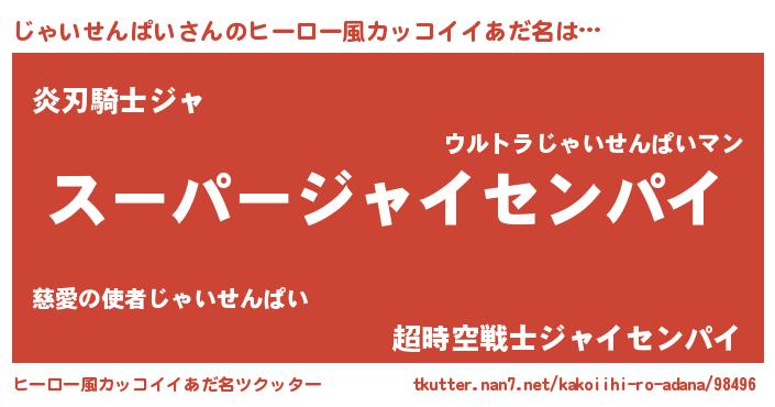 | 胡散臭い通販商品みたいなあだ名 | 『億万長者になれるブレスレット…その名も「じゃいせんぱい」』 |