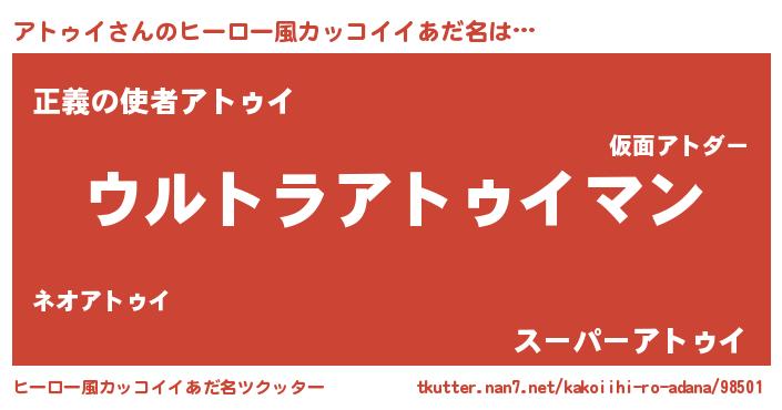| 女子向けラノベタイトル風あだ名 | 『アトゥイの婚約者』『アトゥイ恋絵巻』 |