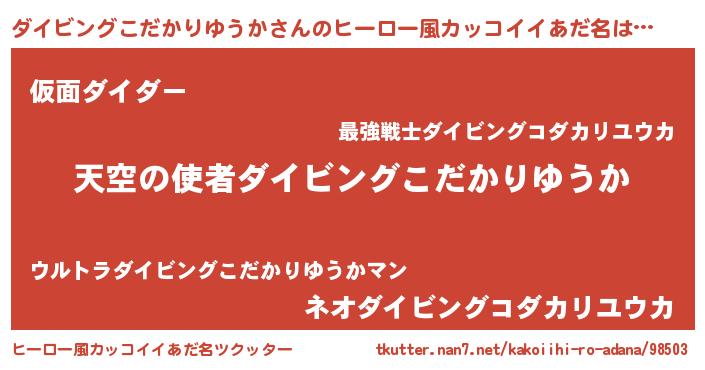 | ヘコむあだ名 | 『ダイビングこだかりゆうか(笑)』『つくし』 |