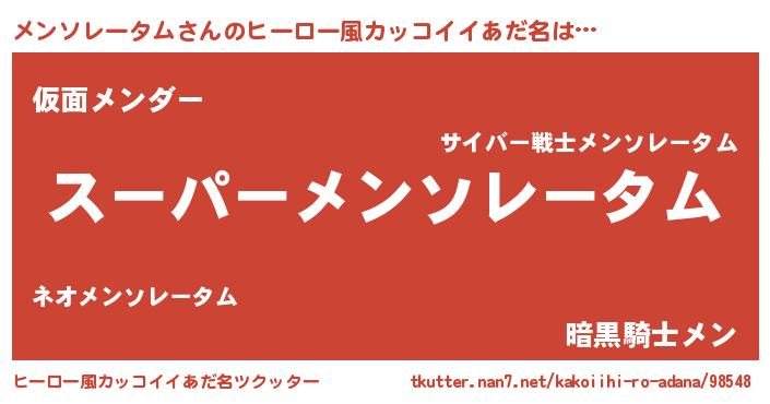 | ヘコむあだ名 | 『メンふぇ~』『メンぷりん』 |