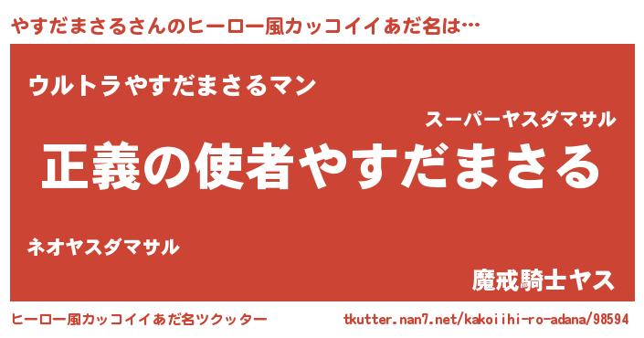 | 男性向けラノベタイトル風あだ名 | 『おまえをオタクにしてやるから、俺をやすだまさるにしてくれ! 』 |