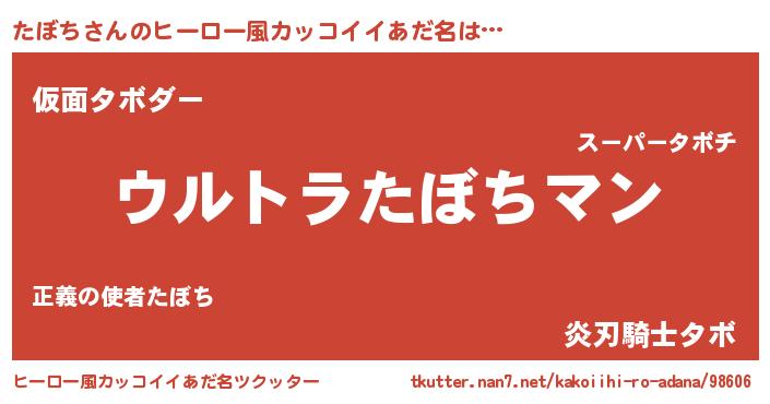 | 男性向けラノベタイトル風あだ名 | 『うちの娘の為ならば、俺はもしかしたらたぼちも倒せるかもしれない。』 |