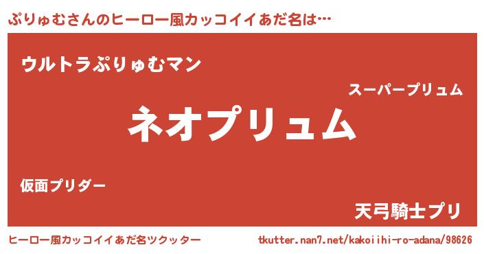 | 男性向けラノベタイトル風あだ名 | 『ぷりゅむという概念が存在しない退屈な世界 』 |