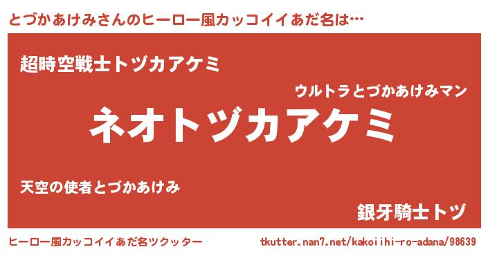 | 胡散臭い通販商品みたいなあだ名 | 『前代未聞の水素水…その名も「とづかあけみ」』 |