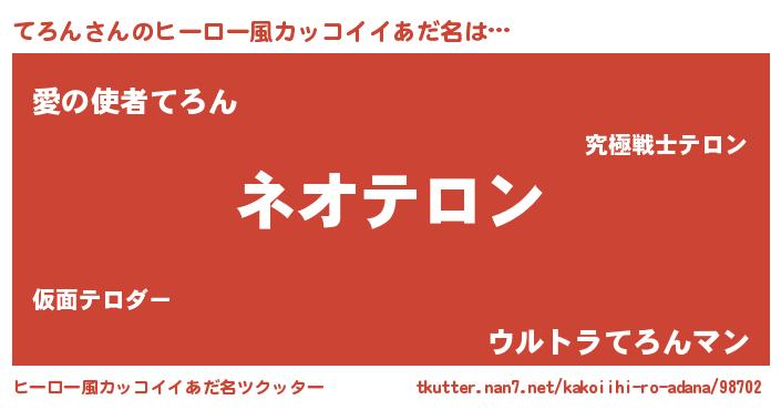 | 男性向けラノベタイトル風あだ名 | 『はたらくてろんさま!』『緋弾のテロン』 |