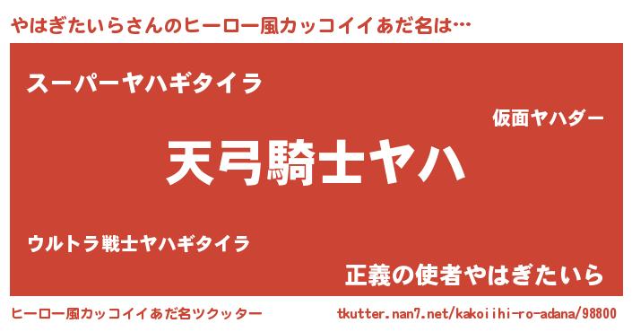 | ポケモン風あだ名 | 『ヤハゴンZ』『ヒヤハギタイラ』 |