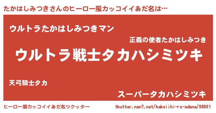 | 男性向けラノベタイトル風あだ名 | 『魔法科高校のたかはしみつき』 |