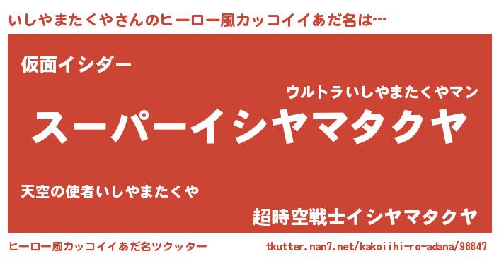 | 胡散臭い通販商品みたいなあだ名 | 『必ず成功する霊験あらたかなお札…その名も「いしやまたくや」』 |