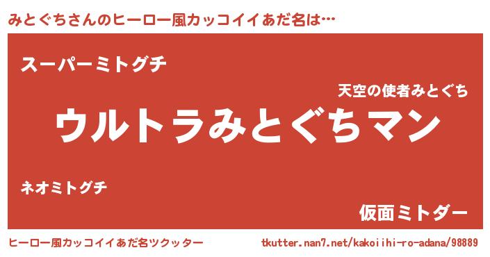 | 男性向けラノベタイトル風あだ名 | 『うちのみとぐちが世界を掌握している!』 |
