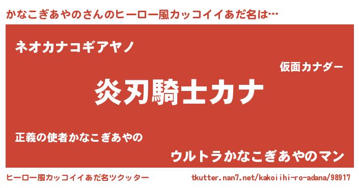 | 男性向けラノベタイトル風あだ名 | 『かなこぎあやのの嫁は女の子じゃないと思った?』 |