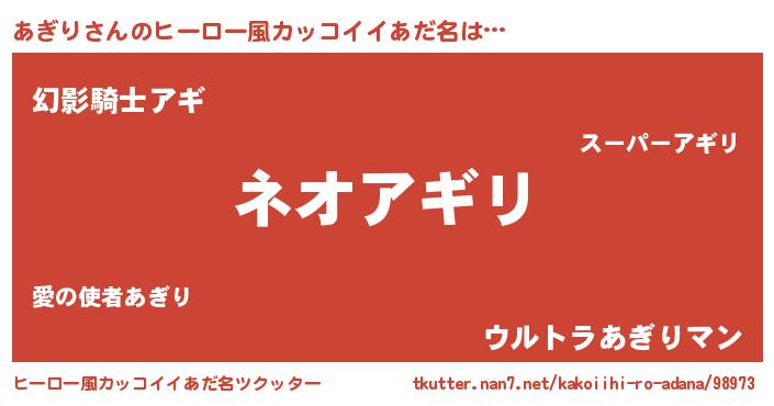 | ポケモン風あだ名 | 『アギゴンZ』『ゼニアギ』『ヒアギリ』 |