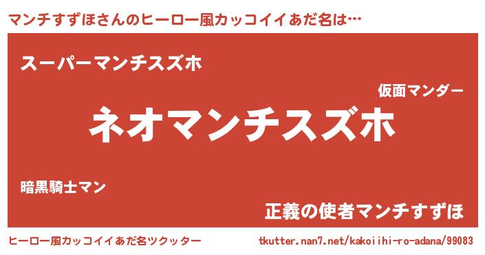 | 男性向けラノベタイトル風あだ名 | 『マンチすずほという概念が存在しない退屈な世界 』 |