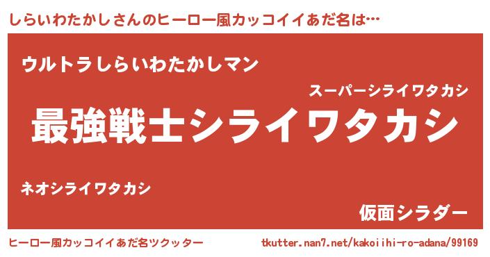 | 男性向けラノベタイトル風あだ名 | 『転生したらしらいわたかしだった件』 |