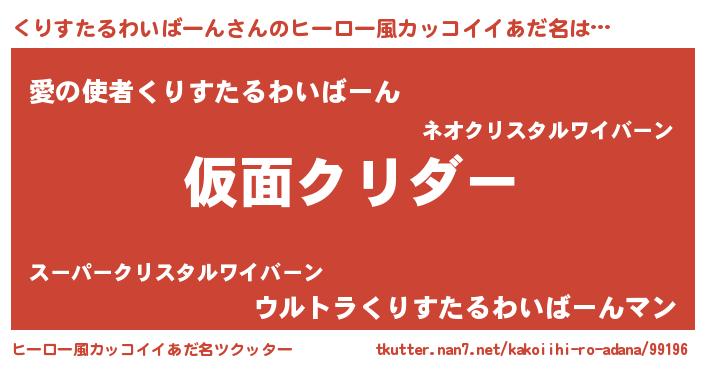 | 意味不明あだ名 | 『住所不定無職くりすたるわいばーん(43歳)』 |
