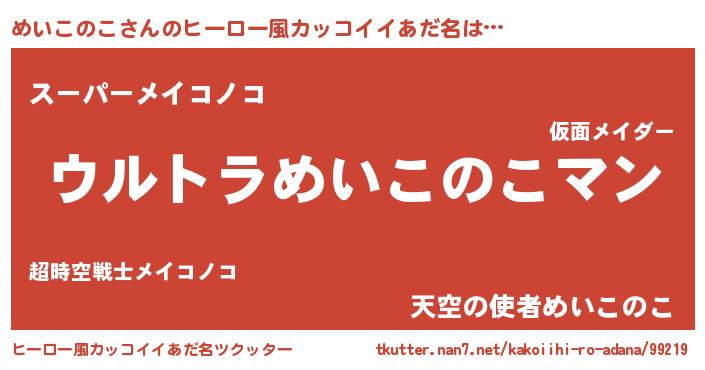 | 意味不明あだ名 | 『めいこのこフォーエバー』 |