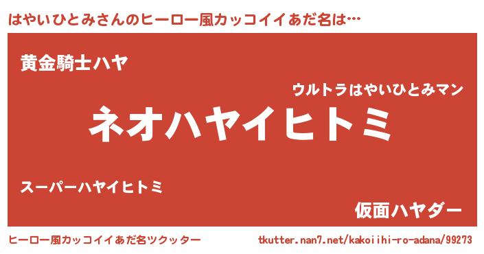 | ポケモン風あだ名 | 『ゼニハヤ』『ヒハヤイヒトミ』 |