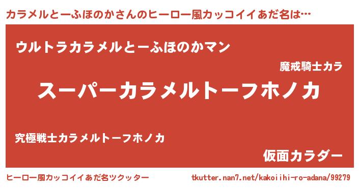 | 男性向けラノベタイトル風あだ名 | 『カラメルとーふほのかの憂鬱』 |