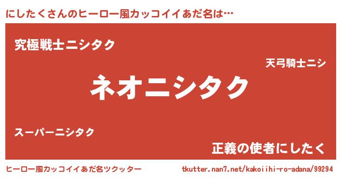 | 男性向けラノベタイトル風あだ名 | 『にしたくという概念が存在しない退屈な世界 』 |