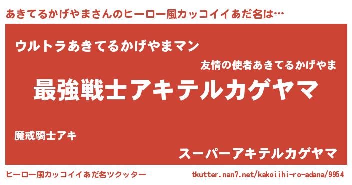 | 意味不明あだ名 | 『自称あきてるかげやま』 |