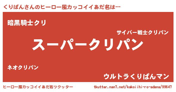 | 男性向けラノベタイトル風あだ名 | 『くりぱんの憂鬱』 |