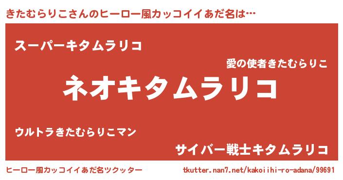 | 男性向けラノベタイトル風あだ名 | 『きたむらりこという概念が存在しない退屈な世界 』 |