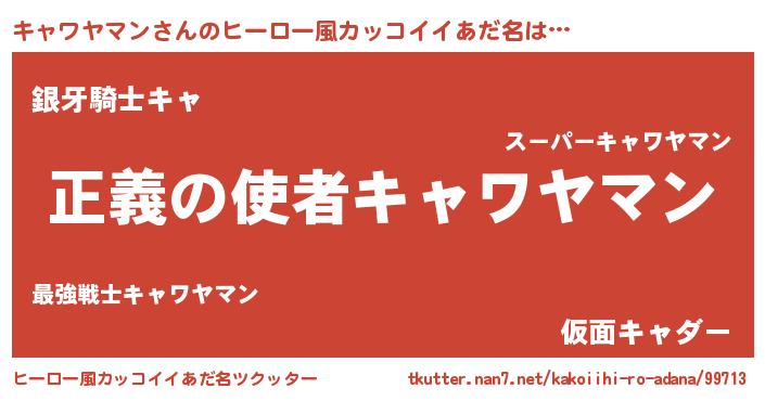 | 男性向けラノベタイトル風あだ名 | 『おまえをオタクにしてやるから、俺をキャワヤマンにしてくれ! 』 |