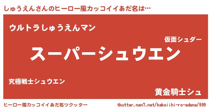 | 男性向けラノベタイトル風あだ名 | 『しゅうえんの憂鬱』『緋弾のシュウエン』 |