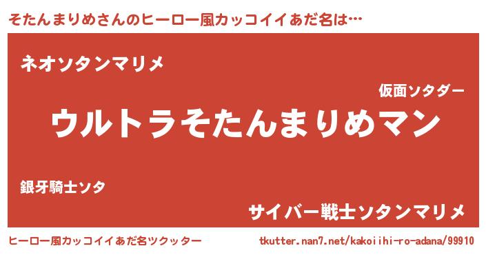 | 男性向けラノベタイトル風あだ名 | 『ソタンマリメスレイヤー』 |