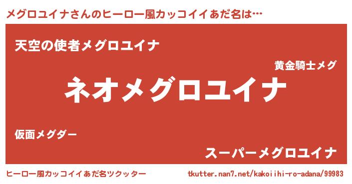 | ヘコむあだ名 | 『メグロユイナ(爆)』『メグもー』 |
