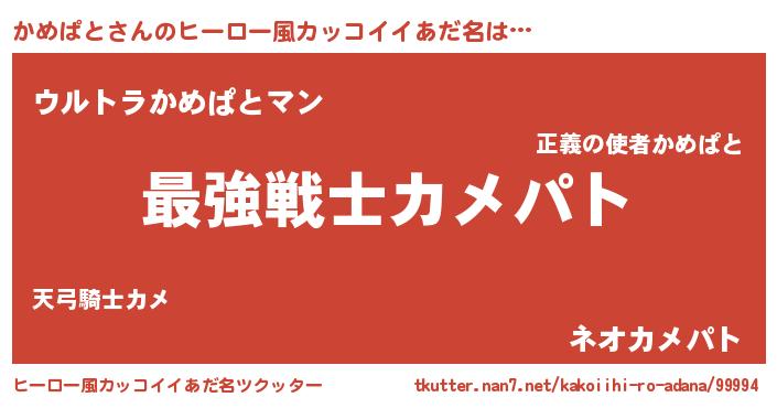 | 伝説のあだ名 | 『最強の忍者かめぱと』 |