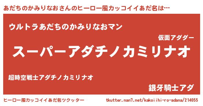 | 胡散臭い通販商品みたいなあだ名 | 『億万長者になれる霊験あらたかなお札…その名も「あだちのかみりなお」』 |