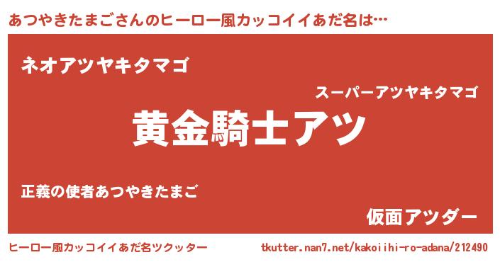 | ヘコむあだ名 | 『あつっ子』『あつやきたまご(震え声)』 |