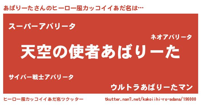 | 伝説のあだ名 | 『救世主となる技術者あばりーた』 |