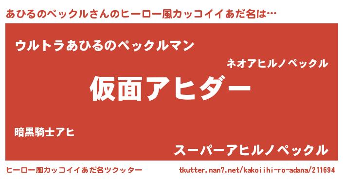 | 意味不明あだ名 | 『住所不定無職あひるのペックル(65歳)』 |