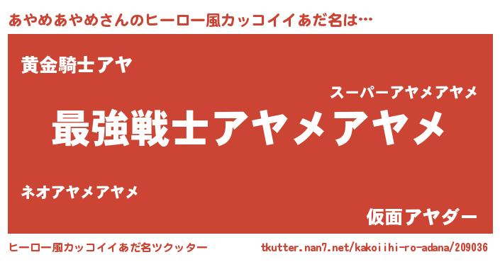 | 男性向けラノベタイトル風あだ名 | 『Re:あやめあやめから始める異世界生活』 |