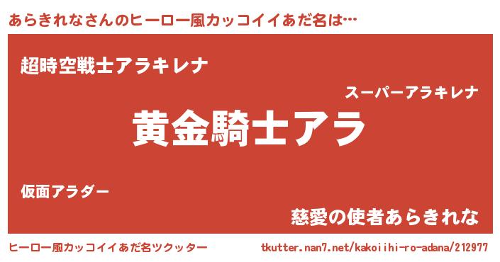| ポケモン風あだ名 | 『ヒアラキレナ』『アラセウス』 |