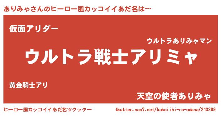 | 女子向けラノベタイトル風あだ名 | 『ありみゃアンティーク』 |