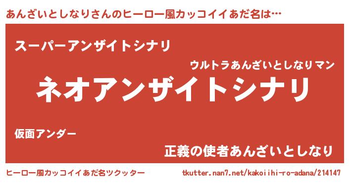 | 胡散臭い通販商品みたいなあだ名 | 『来世でも幸せになれる健康食品…その名も「あんざいとしなり」』 |