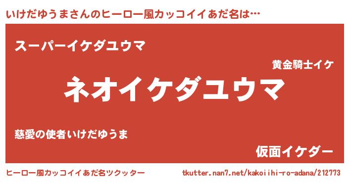 | ヘコむあだ名 | 『いけだゆうま(笑)』『いけっふぃ~』 |