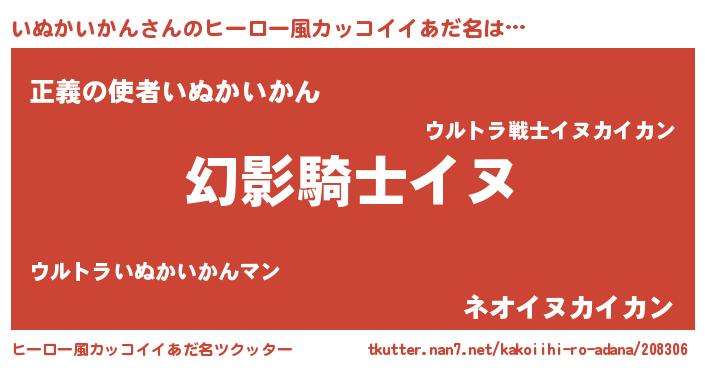 | 男性向けラノベタイトル風あだ名 | 『いぬかいかんの嫁は女の子じゃないと思った?』 |
