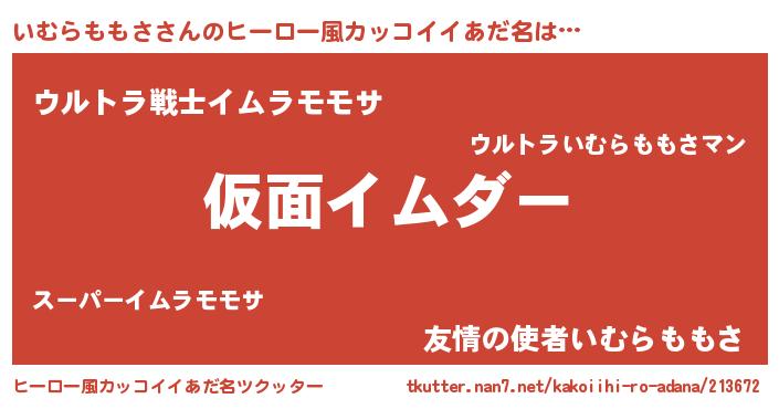 | 男性向けラノベタイトル風あだ名 | 『魔弾の王といむらももさ』 |