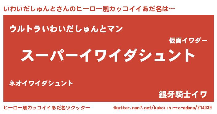 | 男性向けラノベタイトル風あだ名 | 『いわいだしゅんとの憂鬱』 |