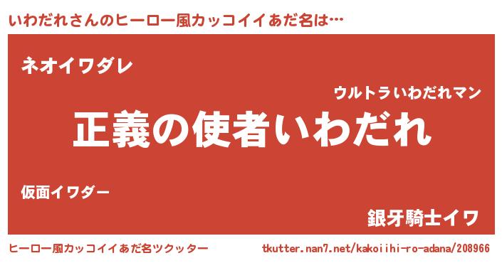 | 男性向けラノベタイトル風あだ名 | 『おまえをオタクにしてやるから、俺をいわだれにしてくれ! 』 |