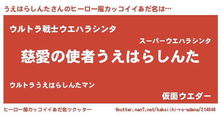 | 意味不明あだ名 | 『眠気覚ましガムうえはらしんた味』 |