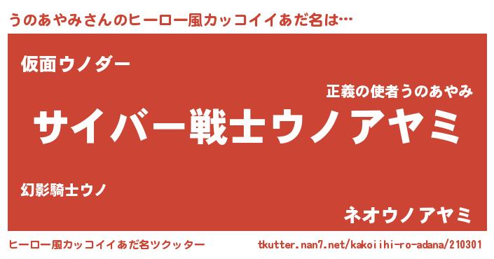 | 伝説のあだ名 | 『古より伝わる吟遊詩人うのあやみ』 |