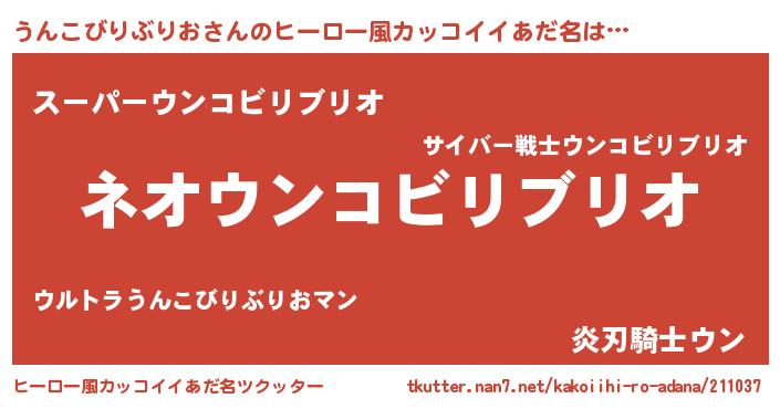 | 胡散臭い通販商品みたいなあだ名 | 『来世でも幸せになれる水素水…その名も「うんこびりぶりお」』 |