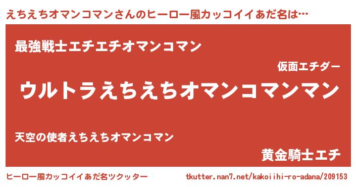 | 男性向けラノベタイトル風あだ名 | 『はたらくえちえちオマンコマンさま!』 |