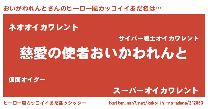 | 男性向けラノベタイトル風あだ名 | 『うちのおいかわれんとが世界を掌握している!』 |