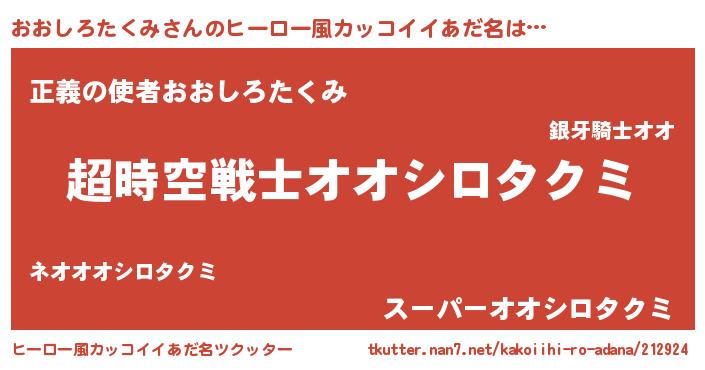 | 男性向けラノベタイトル風あだ名 | 『魔法科高校のおおしろたくみ』 |
